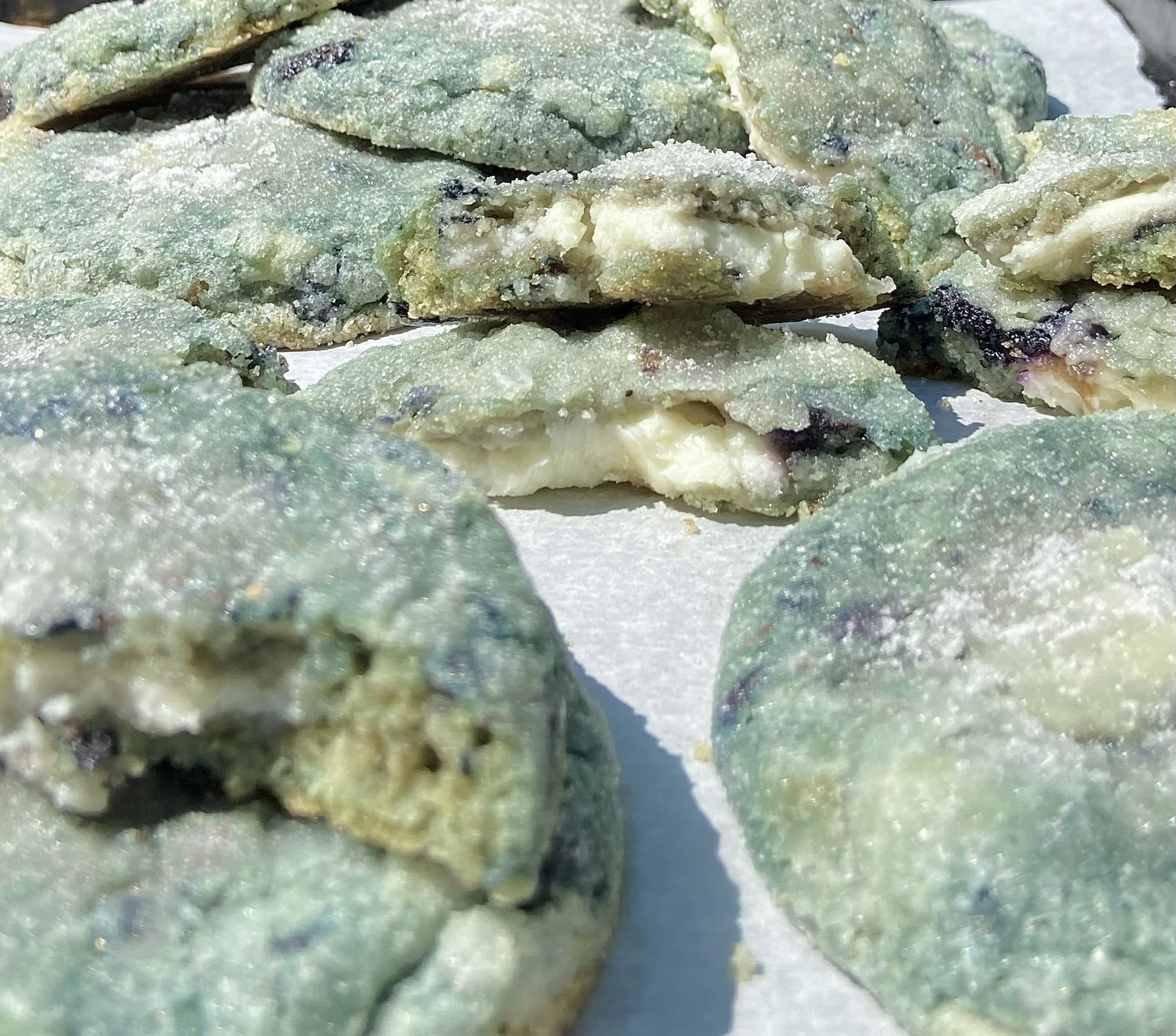 Lastly, add frozen blueberries until dough turns slightly purple and sticky.