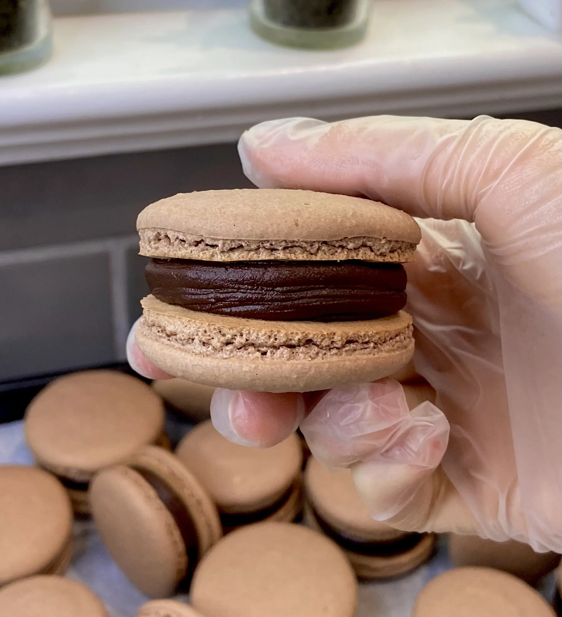 Lastly fill your macaron shells with chocolate ganache or buttercream! The cookies are best when eaten 12-24 hours after filling because the filling and shell will bind together.
