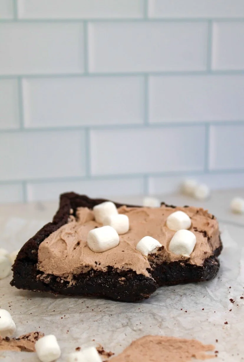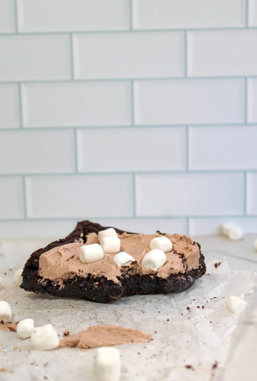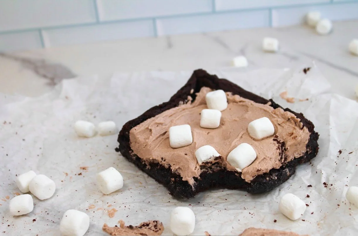 Hot Cocoa Frosting: Whip butter for 3-4 minutes on high speed. Add powdered sugar and hot cocoa mix until smooth and thick. Add in heavy cream and whip on high speed for 2 minutes. Lastly, mix in vanilla.