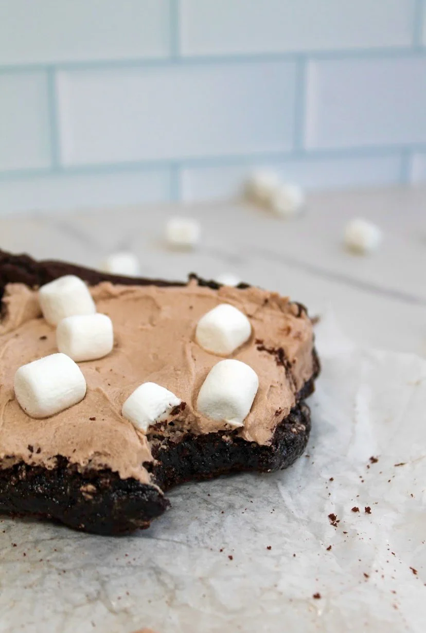 Spread across chilled brownies and then sprinkle mini marshmallows on top.
