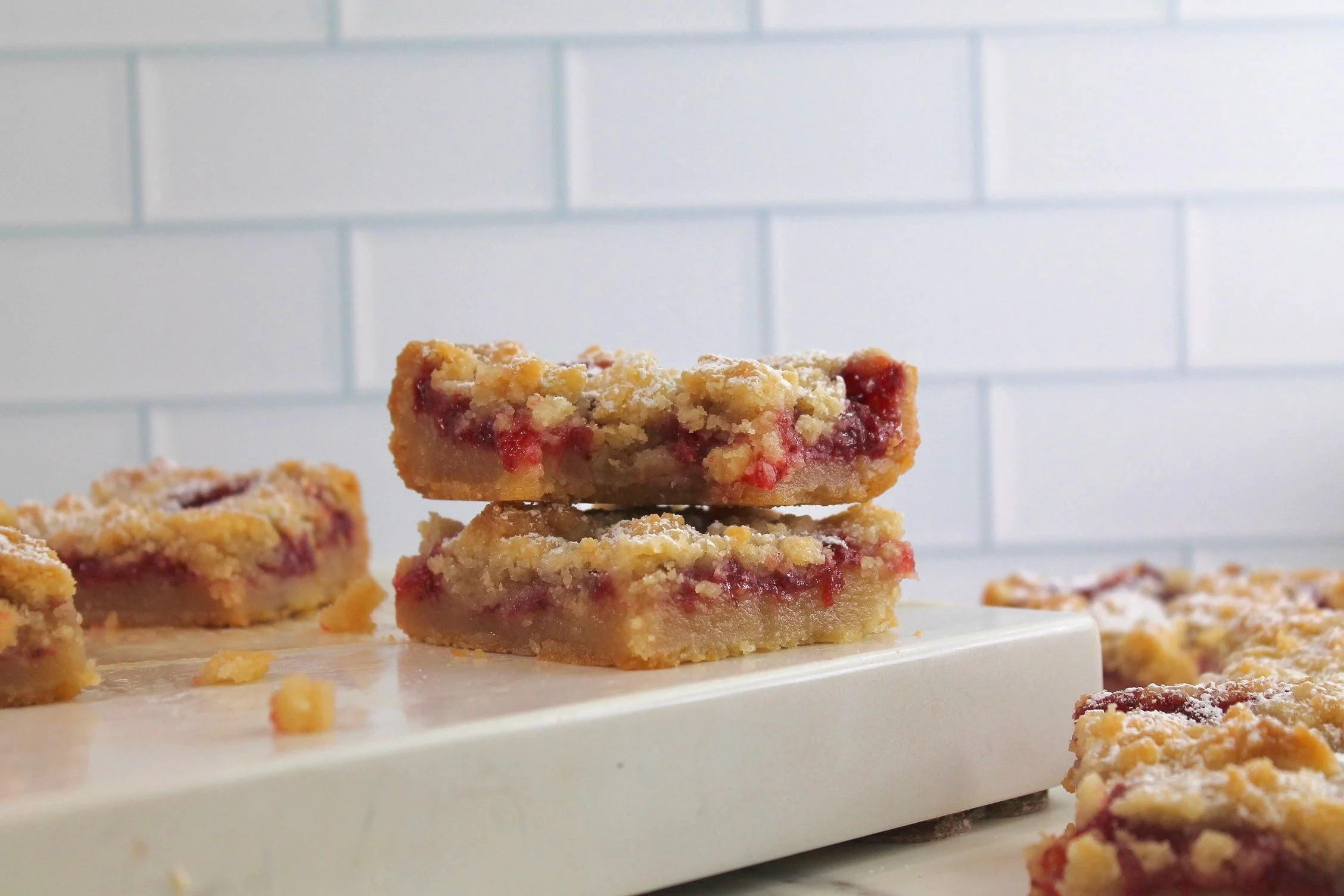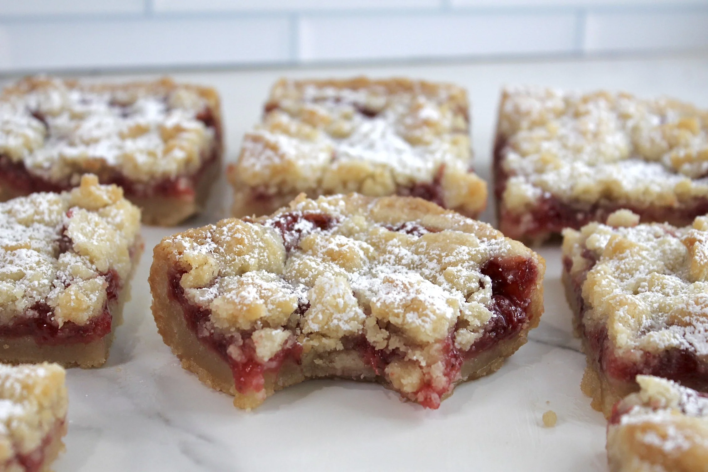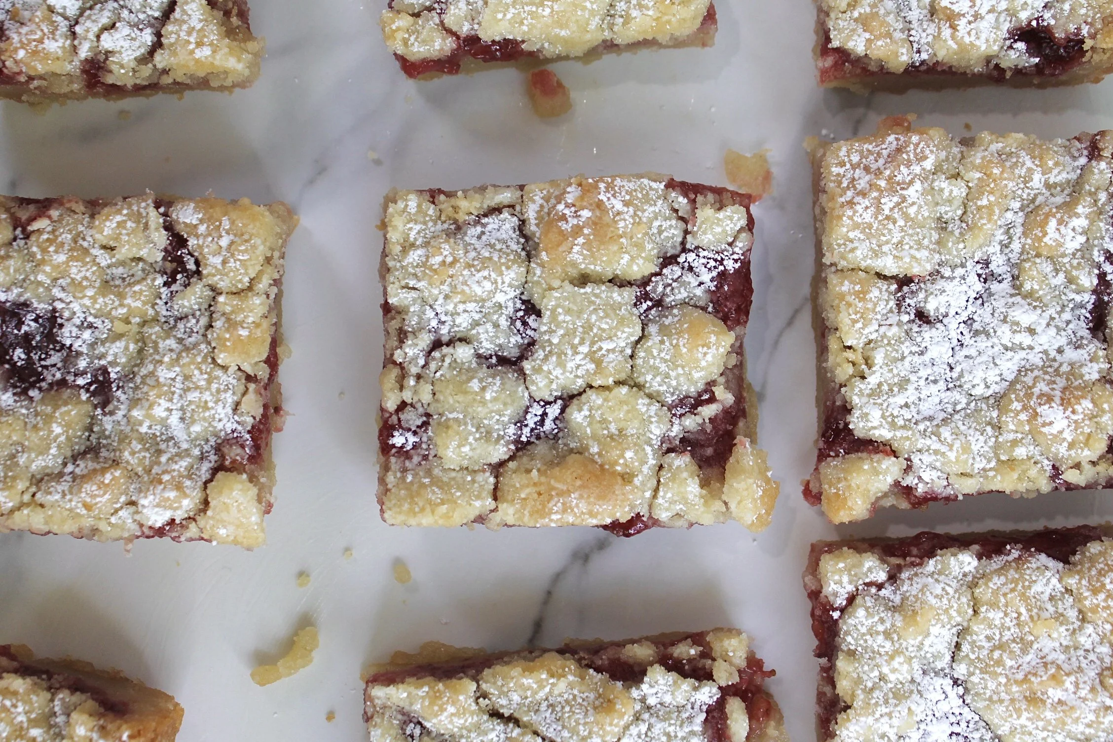 Let the dessert cool before sprinkling powdered sugar (optional) on top and cutting with a knife.