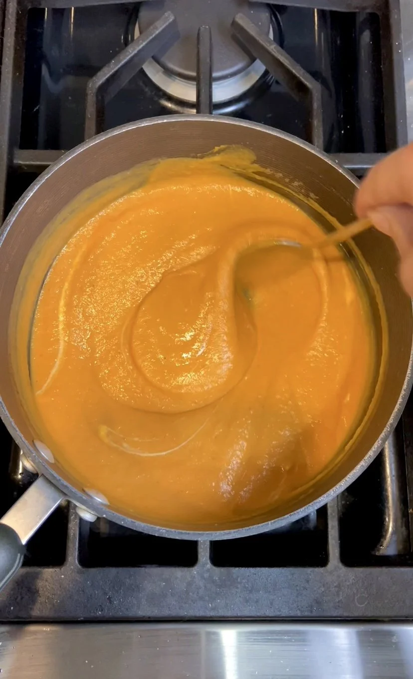 Put this over medium heat until mixture is smooth, fully combined, and chocolate is melted.