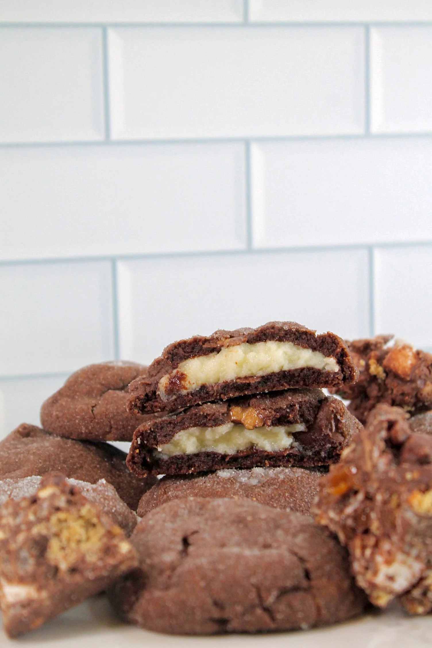 Rocky Road Cookies with Marshmallow Cheesecake Filling