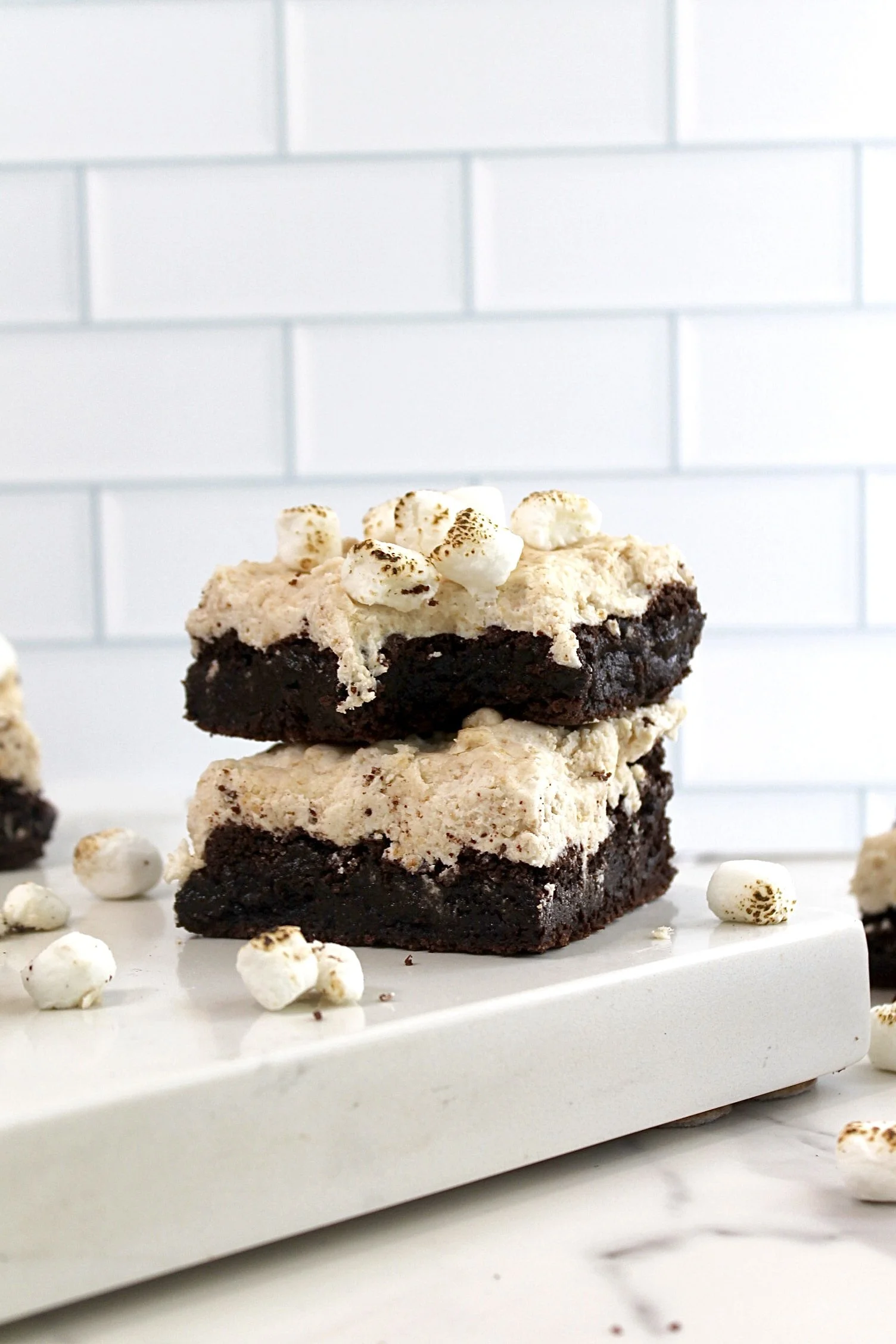 Spread across chilled brownies and then sprinkle mini marshmallows on top. (Optional, but you can also toast the marshmallows!)