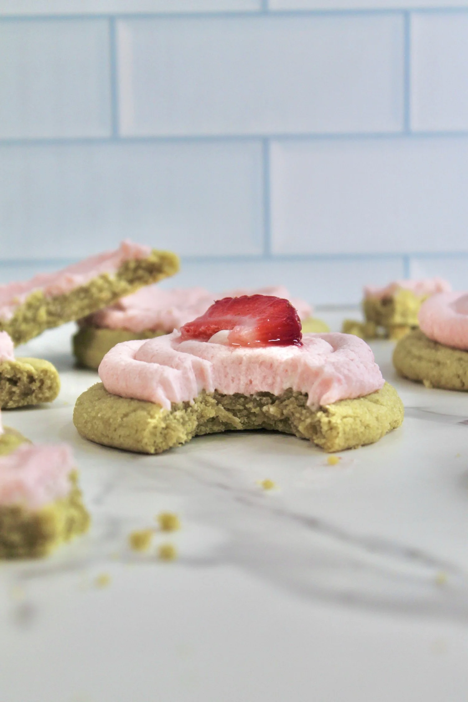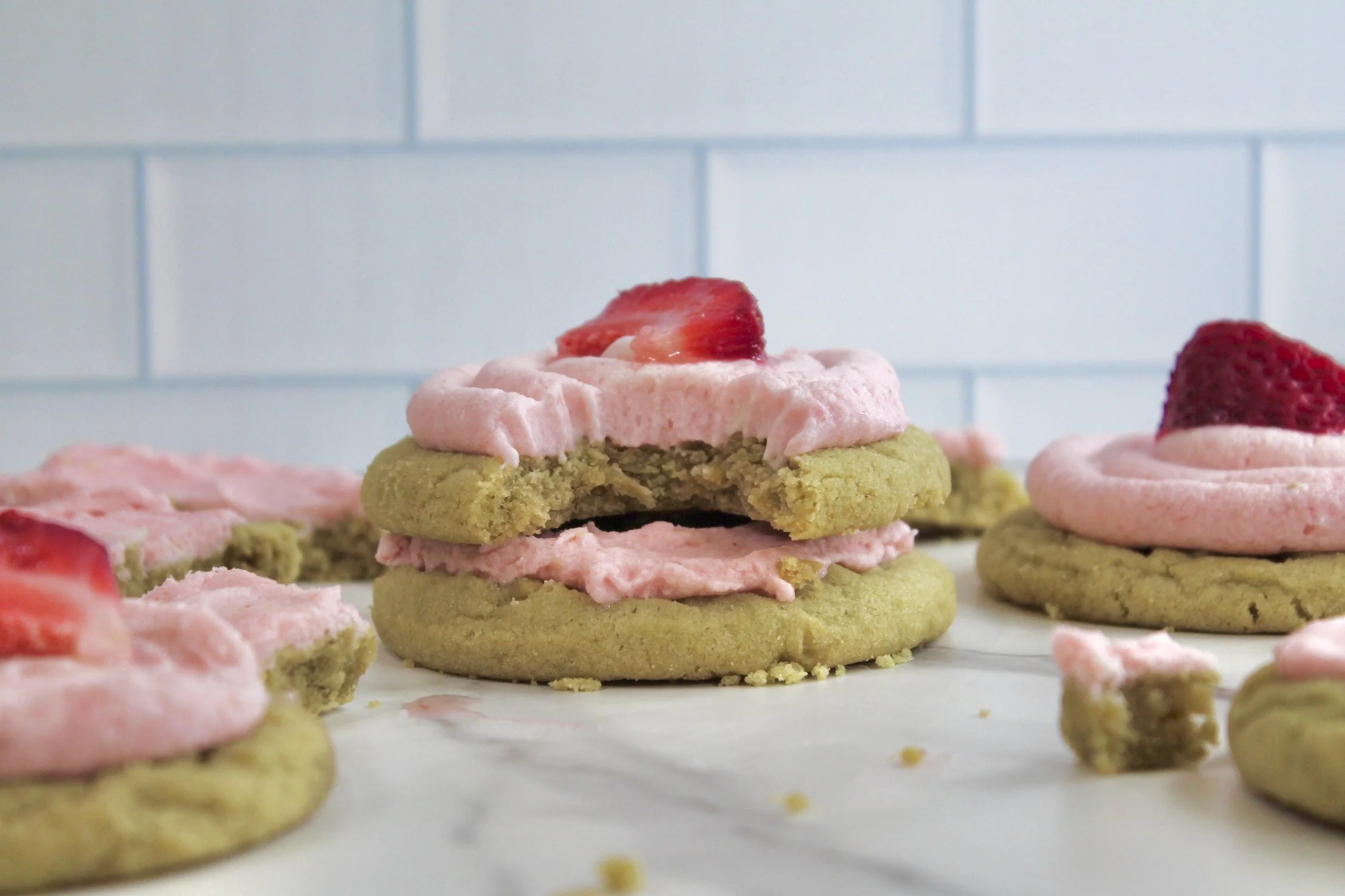 Lastly, frost your cookies in a swirl design. Repeat for each one. (I also added an extra strawberry on top!)